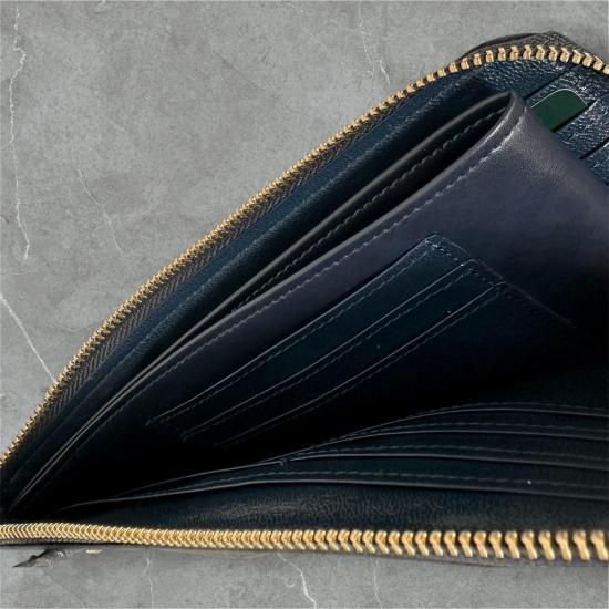 使うごとにしっとりとしてくる素材感と、たくさん入るのに厚みが出ないのでメインのお財布として最適。