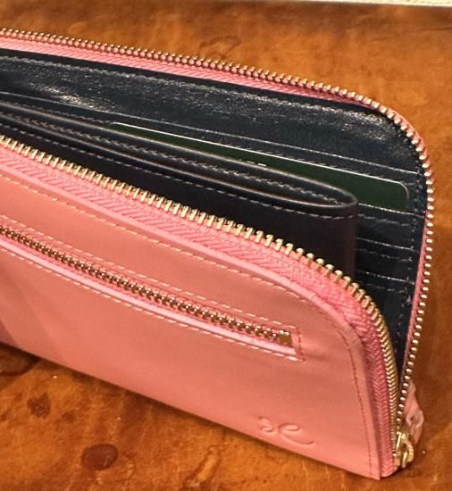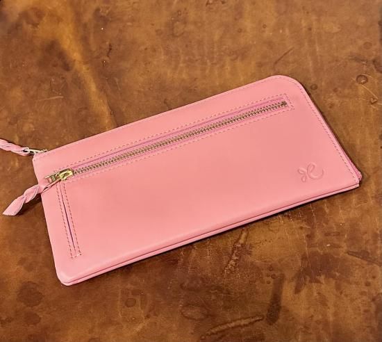 優しい色合いな中にもしっかりとしたピンクを感じる長財布。